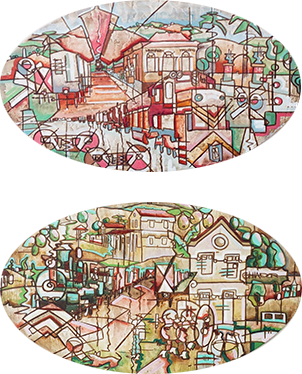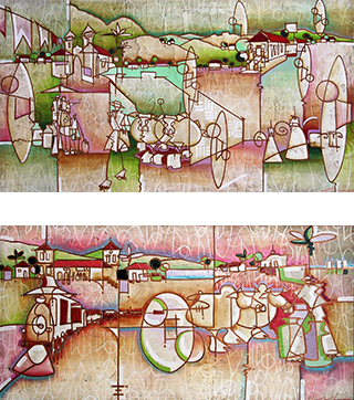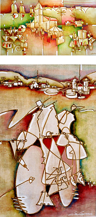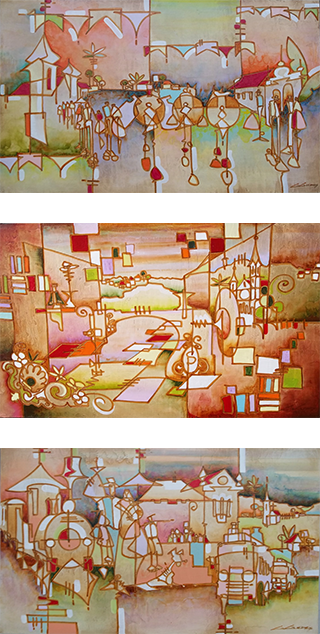 Minha pintura é uma colcha de retalhos. Pequenas porções de cores e fatos que garimpo diuturnamente em meu malão do inconsciente. Um mosaico incomensurável estendido sobre planos da memória.